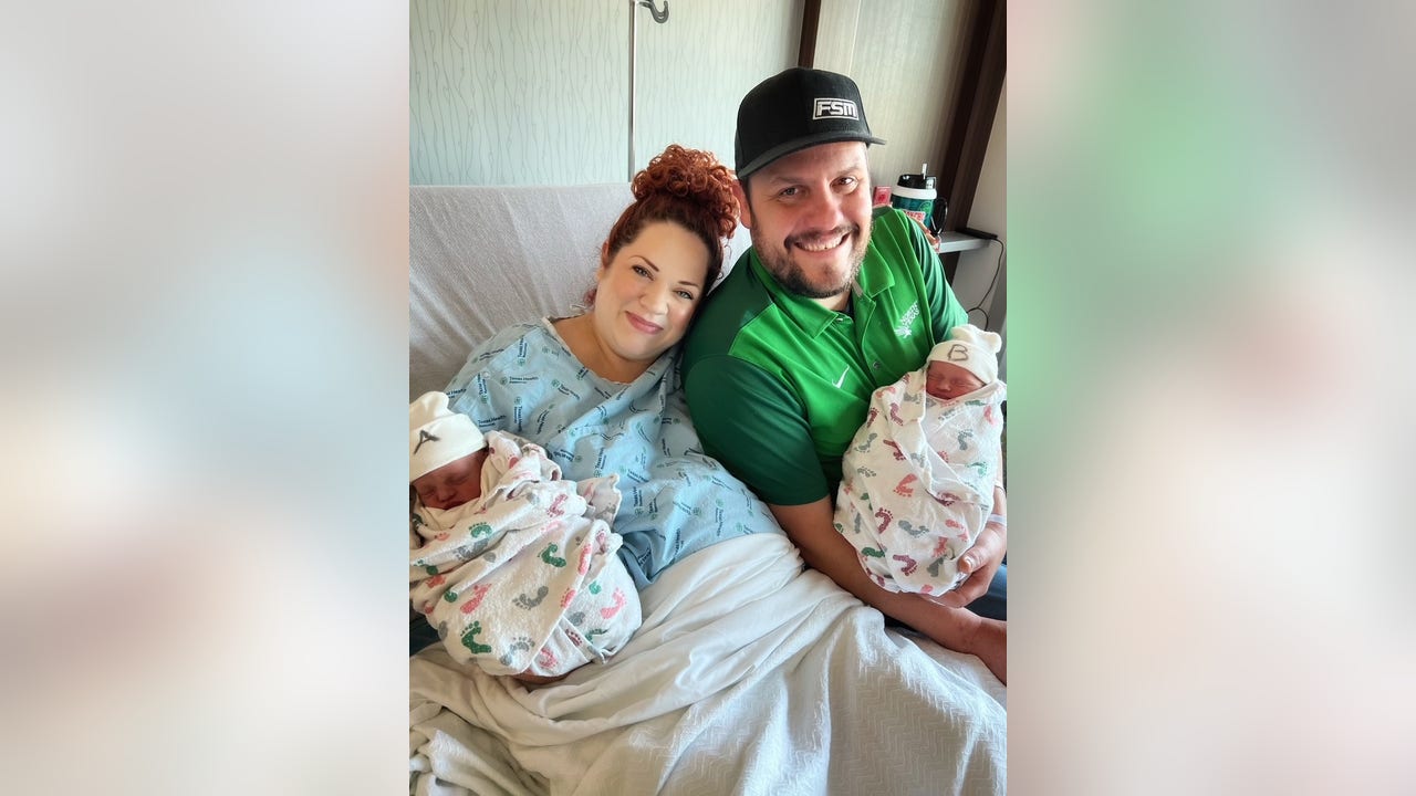 A Denton couple is celebrating their new twin girls who were born in different years!