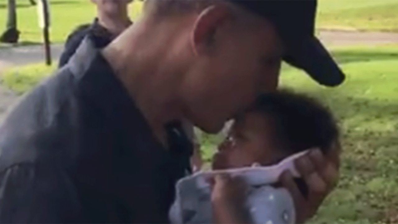 Footage tweeted by Andrea Jones shows the 44th president planting a kiss on her tiny niece’s forehead.