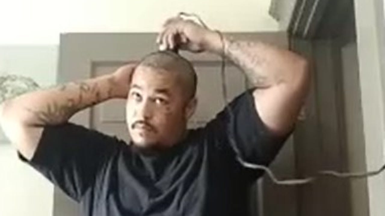 He shared a video of him cutting his hair with his son watching. He streamed the moment on Facebook while standing behind his son.