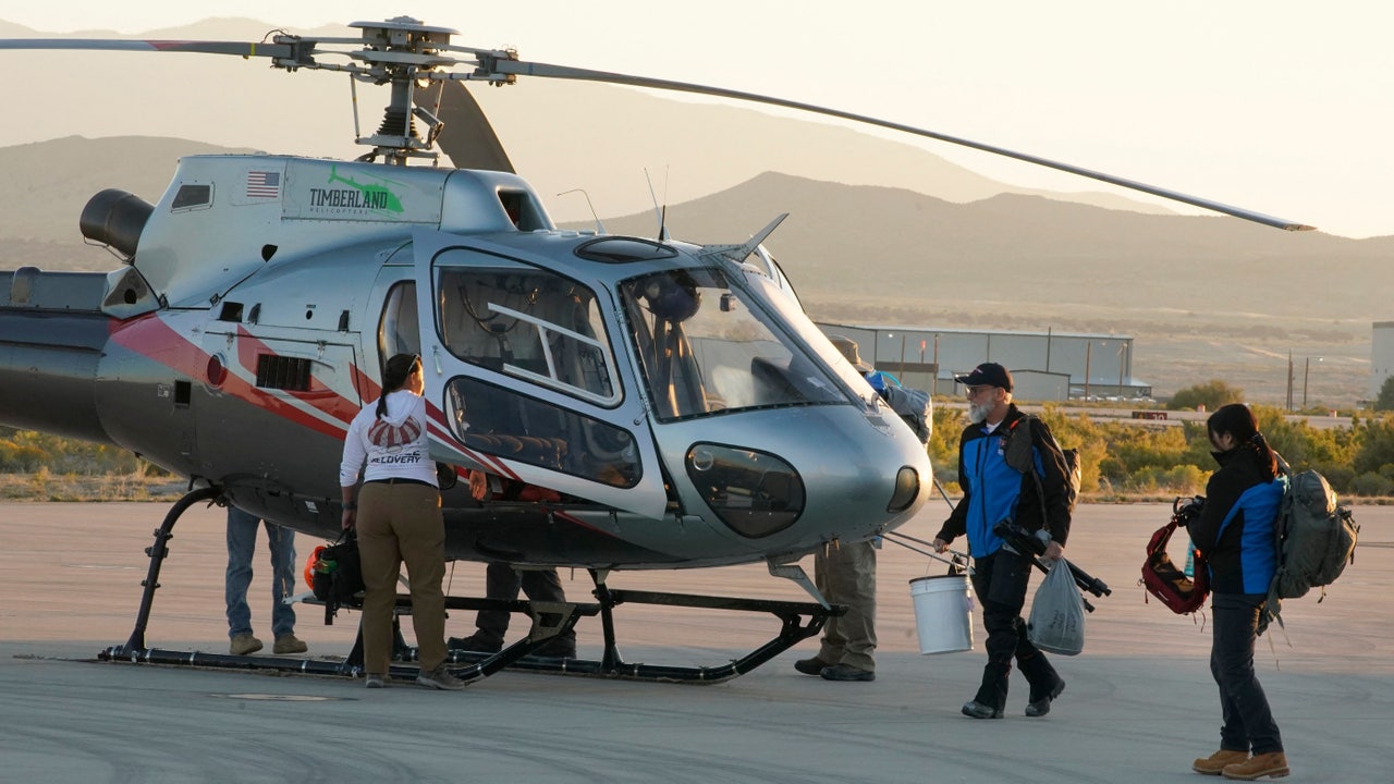 As the Sun rises recovery team members prepare to board helicopters before flying into the Utah desert to participate in the Osiris-Rex asteroid sample return and recovery mission at Dugway, Utah, on September 24, 2023. A seven-year space voyage come