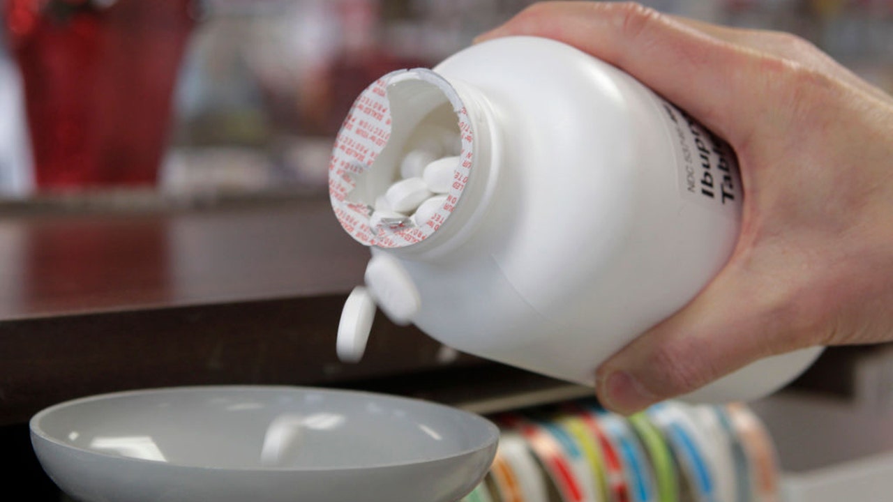 FILE- A pharmacist shakes ibuprofen into a pill counter at a pharmacy. (Paul Chinn/The San Francisco Chronicle via Getty Images)