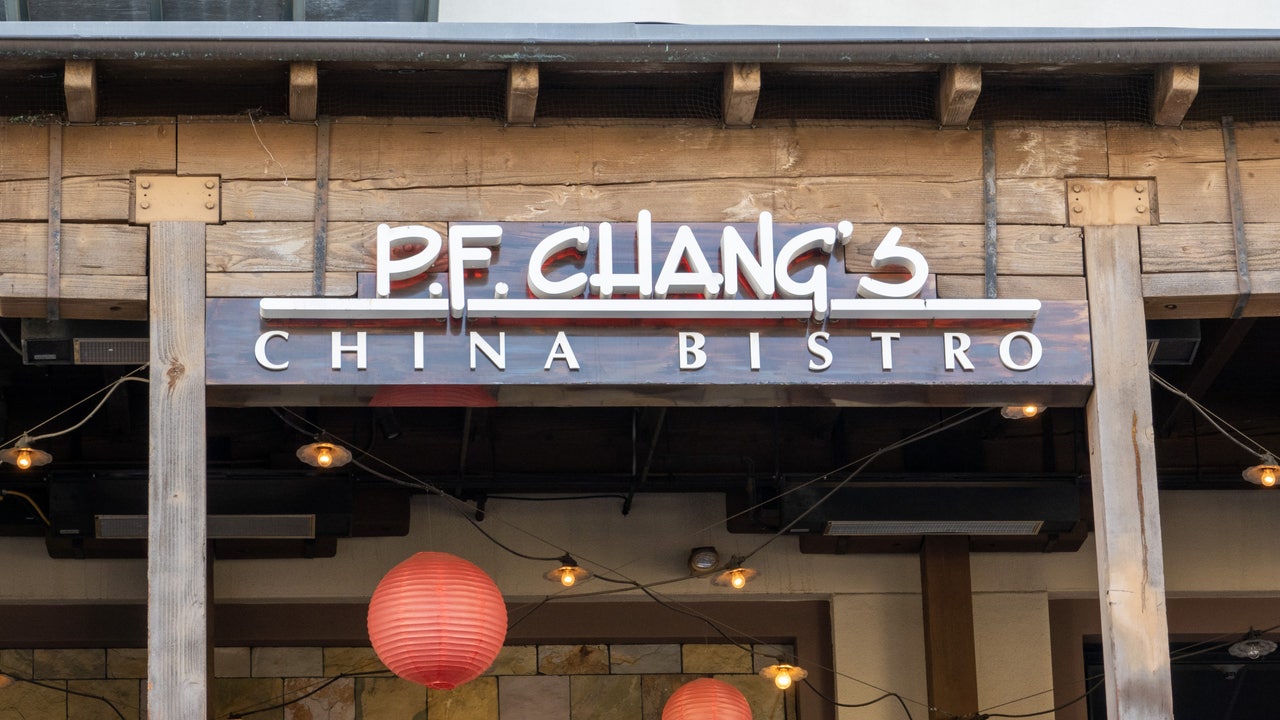 Exterior view of P.F. Changs china bistro signage is seen on May 22, 2021 in Pasadena, California. (Photo by RBL/Bauer-Griffin/GC Images)