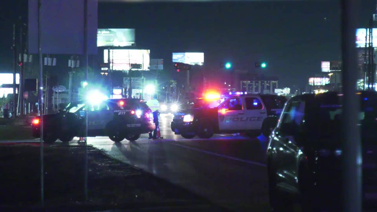 HOUSTON - Police were investigating a deadly crash in west Houston on Wednesday night when someone drove through the scene, striking a patrol car and almost hitting officers, authorities say.