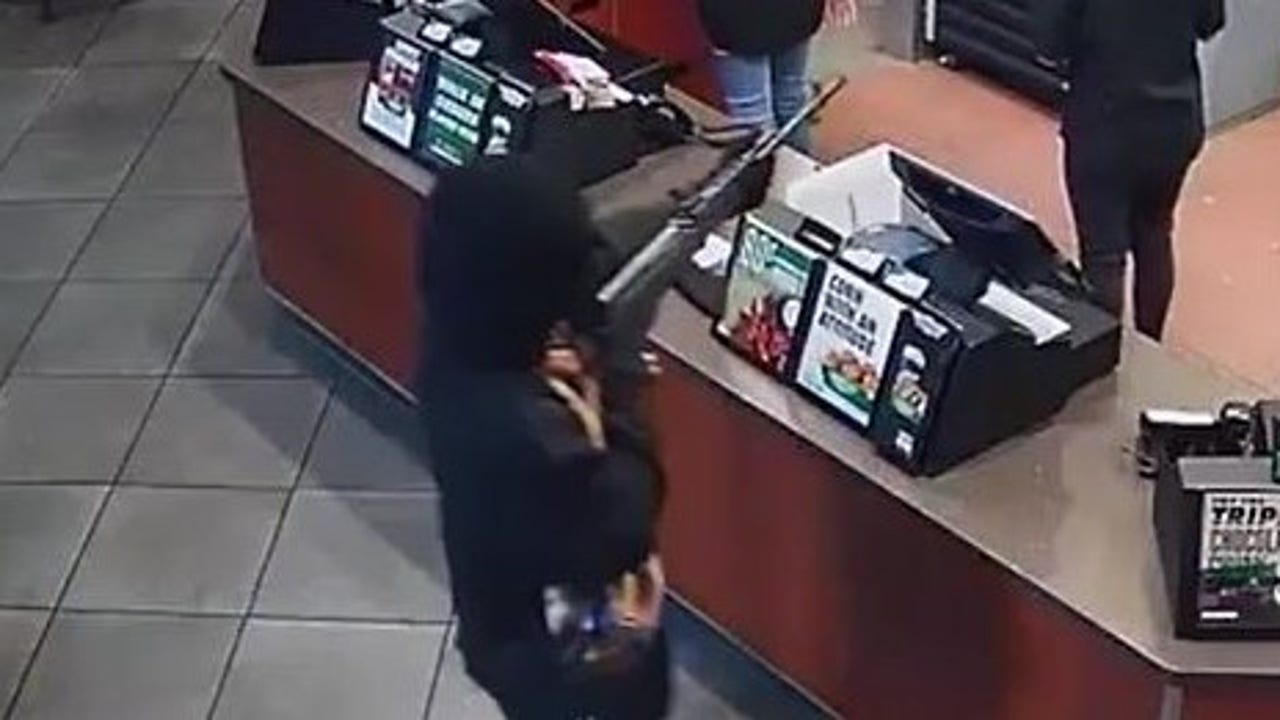 According to HPD, one of the suspects used a rifle while pointing it at the employees behind the counter and demanded the money from the cash registers. The second suspect with a handgun walked around the counter and removed the money from the registers. A third suspect with a handgun in his waistband walked up to the customers at their tables and took their personal property. Credit: HPD