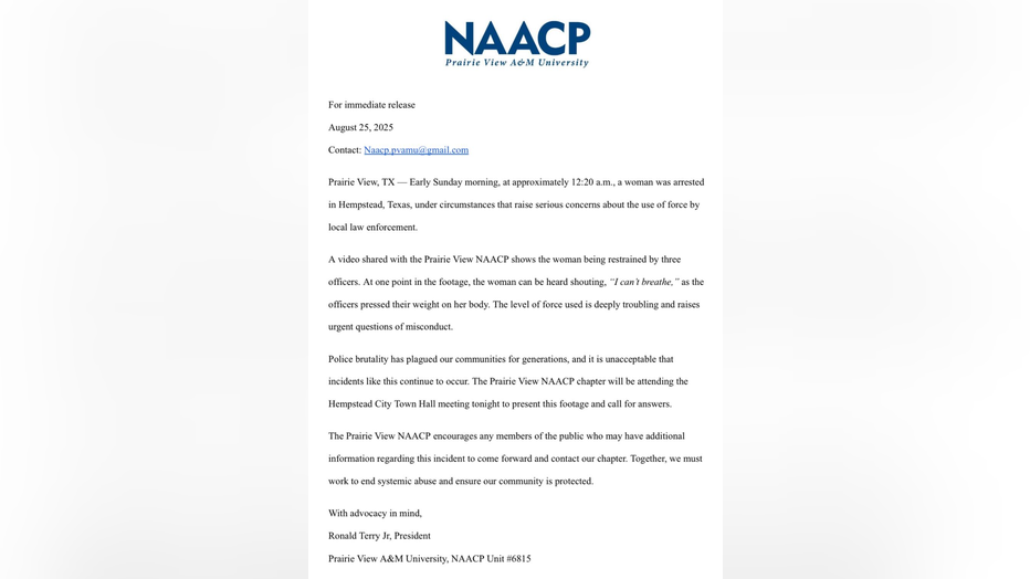 PV NAACP put out a statement and a video on their Instagram that shows Hempstead police using force against a woman, who can be heard in the video yelling, "I can't breathe."