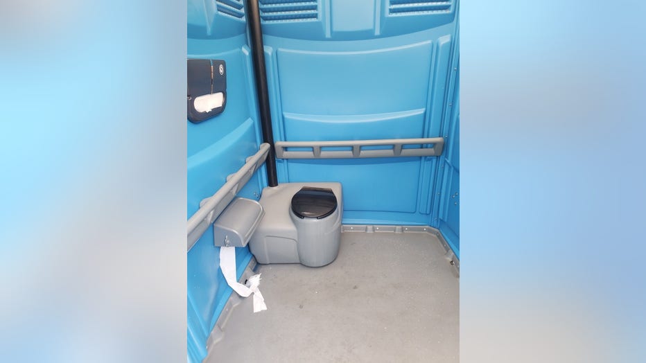 Portable toilet used by Department of Public Works employees.