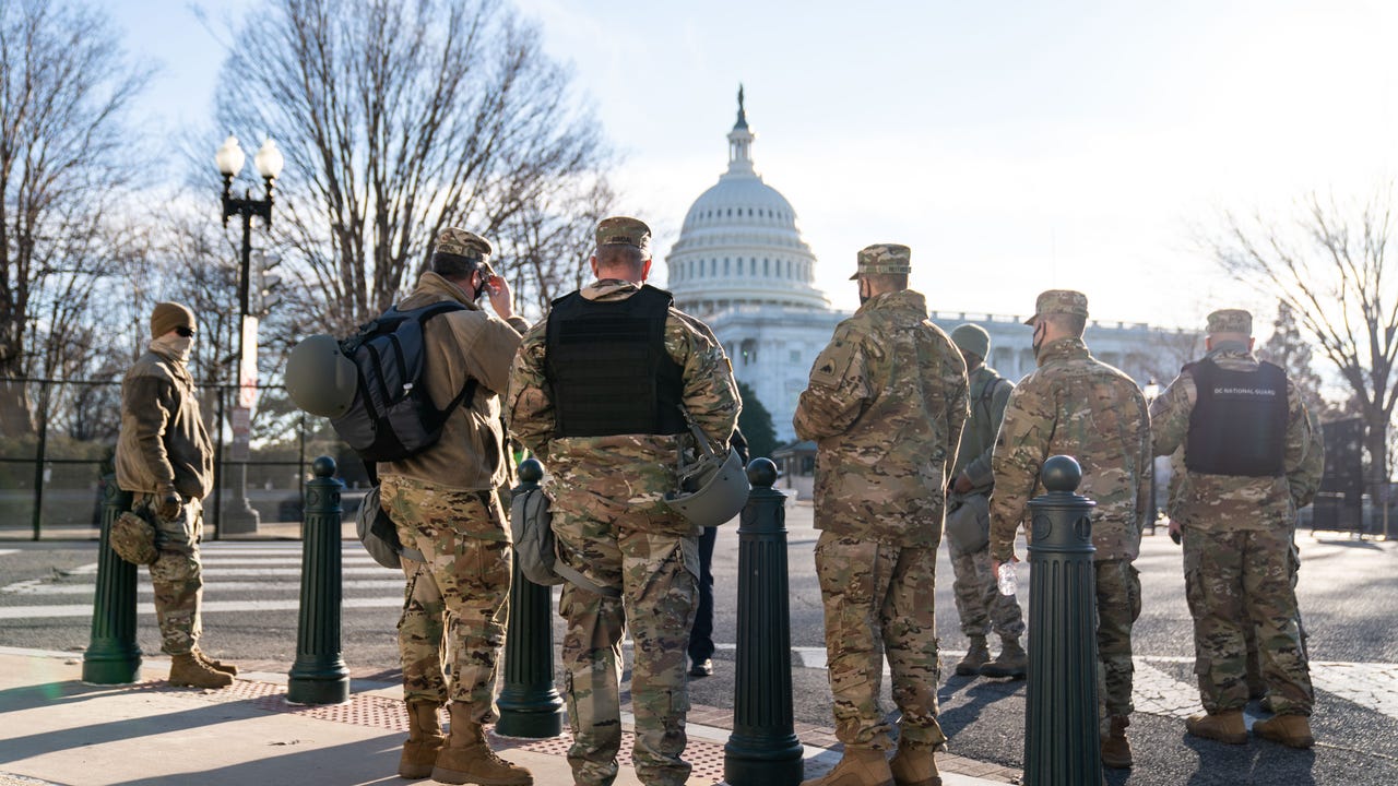 Roughly 6,200 members of the National Guard from six states — Virginia, Pennsylvania, New York, New Jersey, Delaware and Maryland — will help support the Capitol Police and other law enforcement in Washington for the next 30 days. Inauguration Day road closures may be altered.