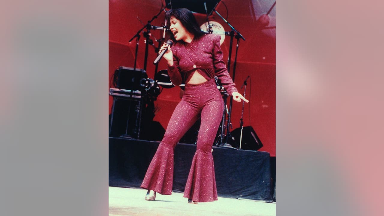 Mexican singer Selena performing in concert; one month later she would be shot and killed by Yolanda Saldivar, the pres. of her fan club, after confronting her on charges that she was embezzling funds. (Photo by Arlene Richie/Getty Images)