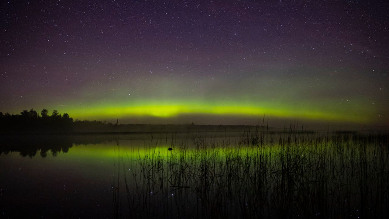 The aurora borealis could be seen on the North horizon in the night sky over Wolf Lake in the Cloquet State Forest in Minnesota around midnight on September 28, 2019. (Photo by Alex Kormann/Star Tribune via Getty Images)