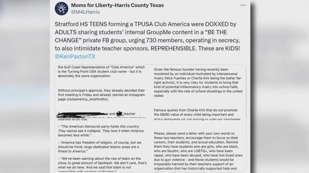 SPRING BRANCH, Texas - Spring Branch ISD is investigating allegations that parents leaked personal information of students and staff online after a Turning Point USA chapter was formed at Stratford High School.
