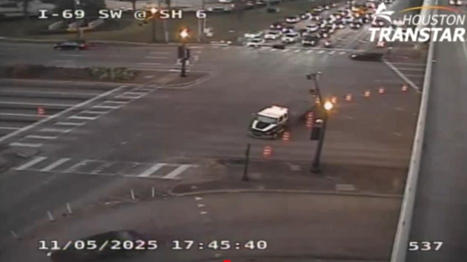 Officials stated all traffic on the northbound U.S. Highway 59 feeder approaching the intersection is being rerouted to one lane and may only turn right to go southbound on State Highway 6.