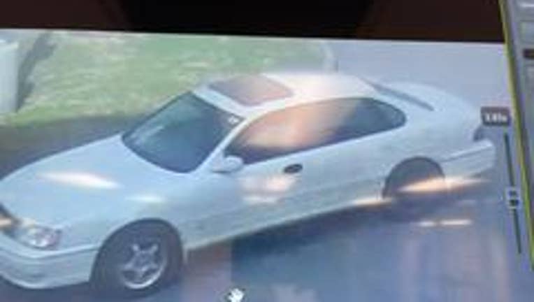 The man then reportedly walked over to a white-colored, four-door sedan – possibly a Toyota Avalon – that has an all-black colored spare tire on the left passenger side.