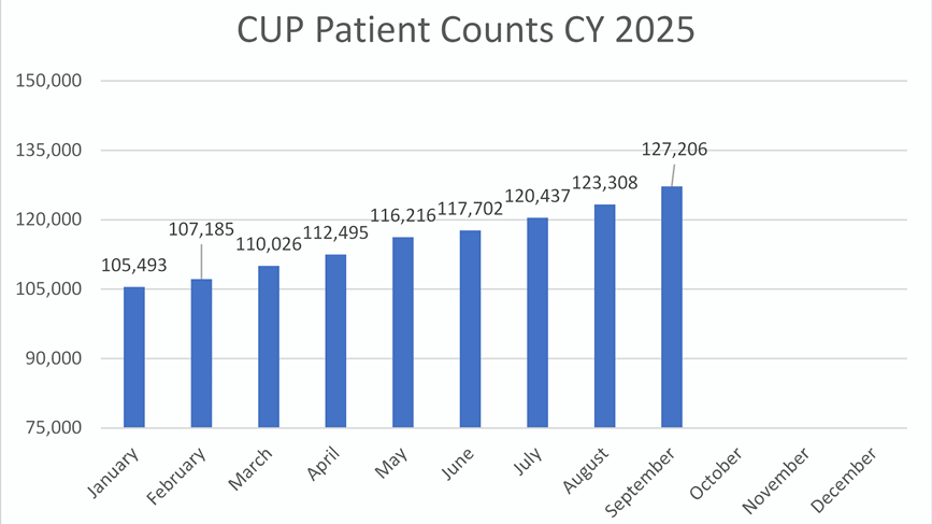 Starting the year with 105,493 patients in January, the count increased to 110,026 by March and reached 117,702 by June. The growth continued into the third quarter, with the patient count surpassing 120,000 in July and ultimately reaching 127,206 by the end of September 2025.