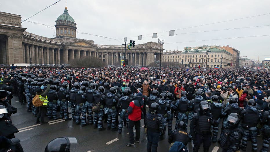 MOSCOW (AP) - Russian police arrested more than 3,000 people Saturday in nationwide protests demanding the release of opposition leader Alexei Navalny, the Kremlin's most prominent foe, according to a group that counts political detentions.