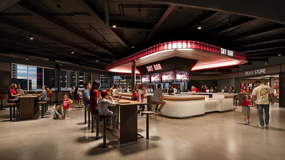 The Sky Bar and HOU Market will be on the upper concourse with views of Downtown Houston.