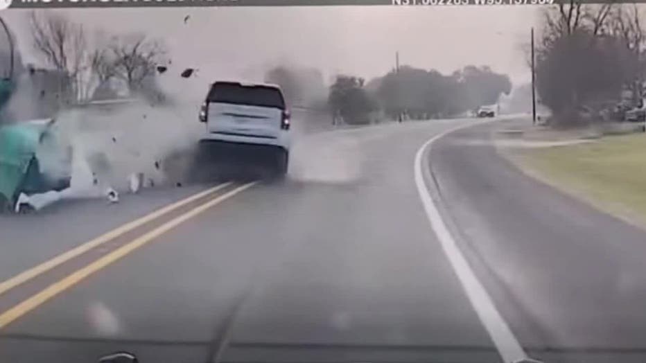 Deputies shared video showing a car swerving in and out of its lane before colliding with the commercial truck. Authorities say the driver suffered only minor injuries, but multiple vehicles were damaged in the crash.