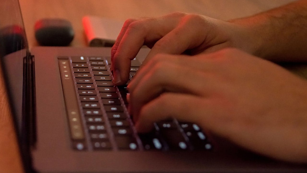 FILE - Mans hands are seen typing on an Apple laptop in Athens, Greece, on April 4, 2022. (Photo by Nikolas Kokovlis/NurPhoto via Getty Images)