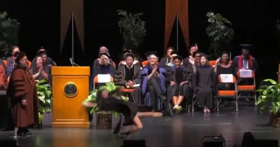 University of Texas at Austin student shows off impressive moves at a graduation ceremony. (Video courtesy of The University of Texas at Austin)