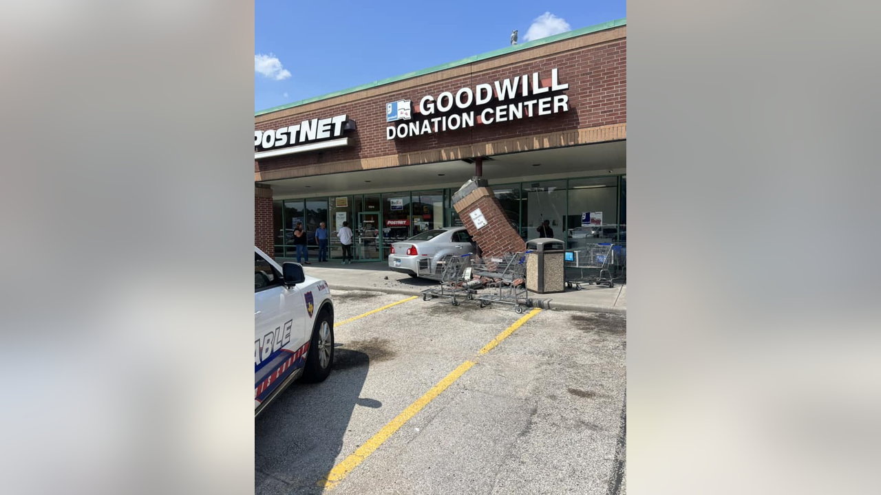 Vehicle crashes in front of NW Harris County Goodwill Donation Center