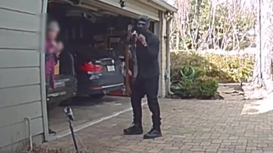Police say the woman had the garage door open and was putting something in her trunk when a suspect with a handgun ran up behind her and demanded her keys.
