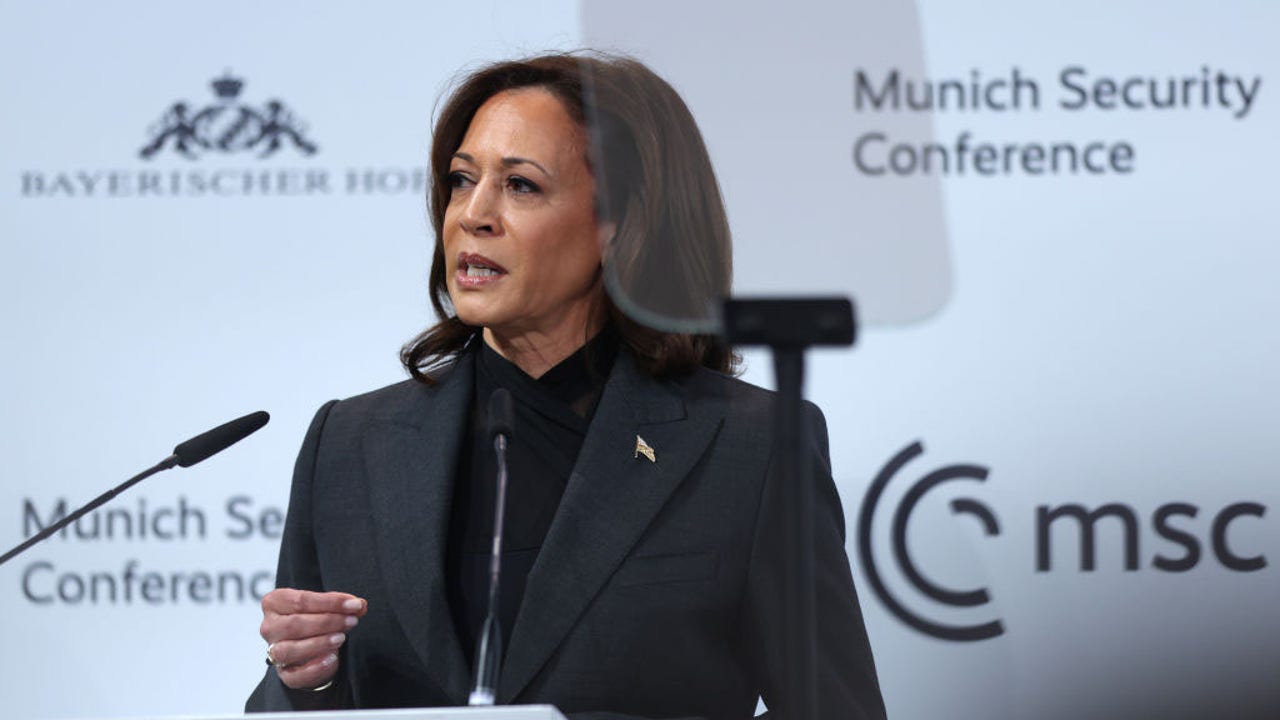 MUNICH, GERMANY - FEBRUARY 18: US Vice President Kamala Harris speaks during the 2023 Munich Security Conference (MSC) on February 18, 2023 in Munich, Germany. The Munich Security Conference brings together defence leaders and stakeholders from aroun