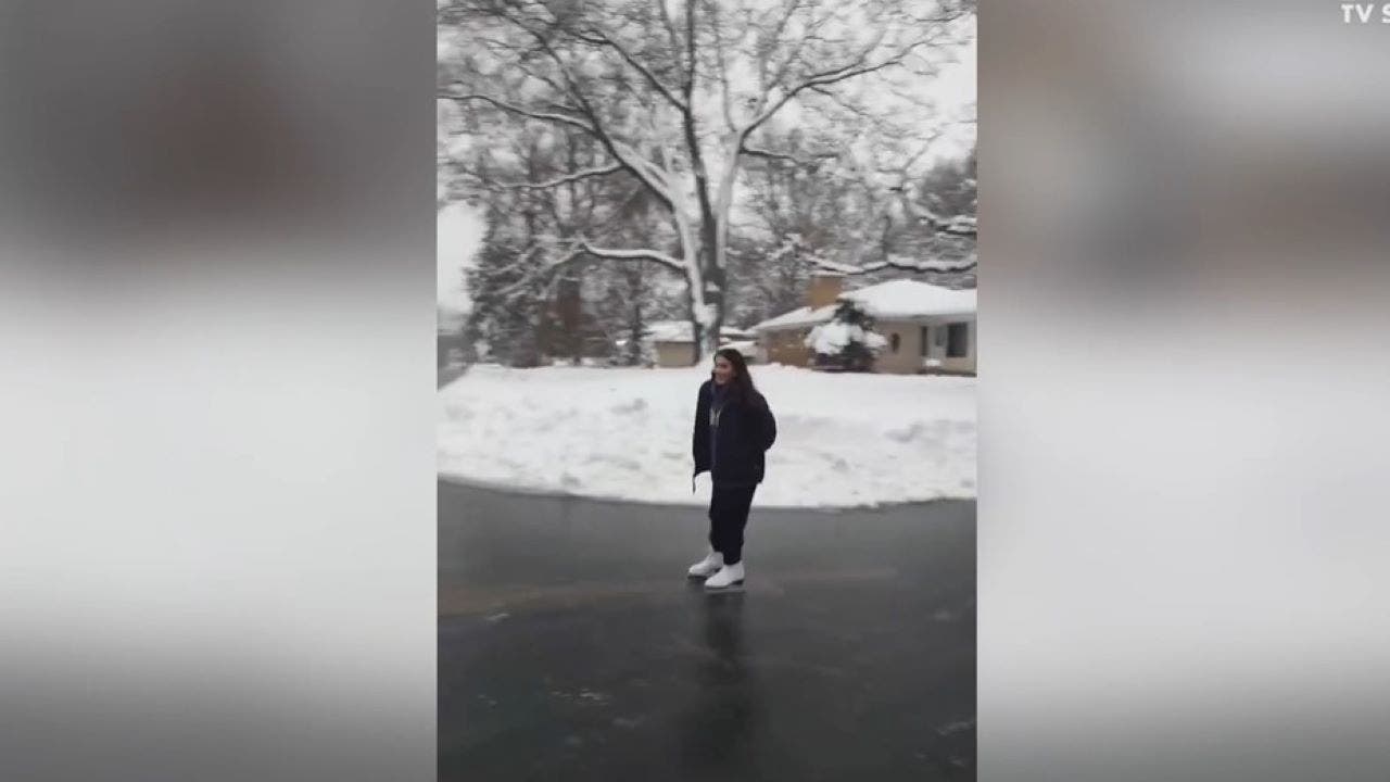Watch: Girl skates down icy street in Roseville, Minnesota