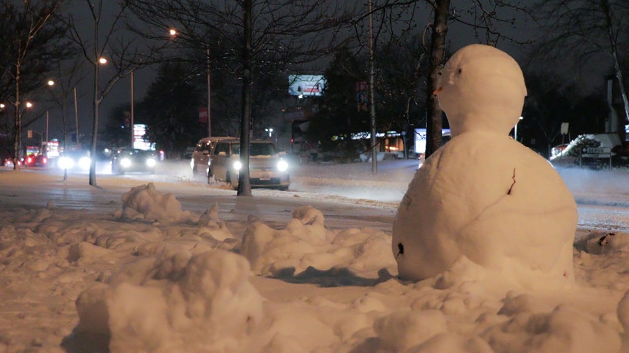FILE - A snowman is seen along the walkway as a winter storm hits southern Ontario with heavy snow and strong winds in Toronto, Ontario, Canada, on Jan. 12, 2024. (Photo by Arrush Chopra/NurPhoto via Getty Images)