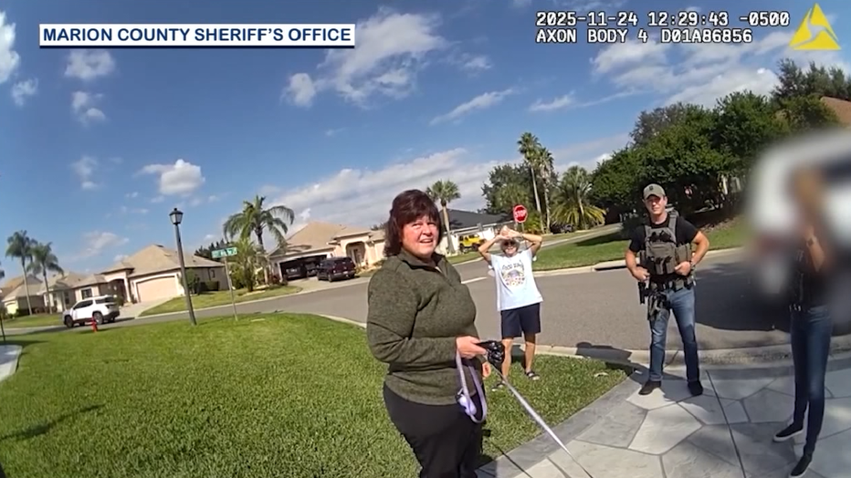 Debra Newton was arrested on Dec. 15 in The Villages after she was stopped by deputies at her front yard while walking her dog. Newton's neighbor was seen on body camera joking that deputies were there for Newton, who was called "Sharon."
