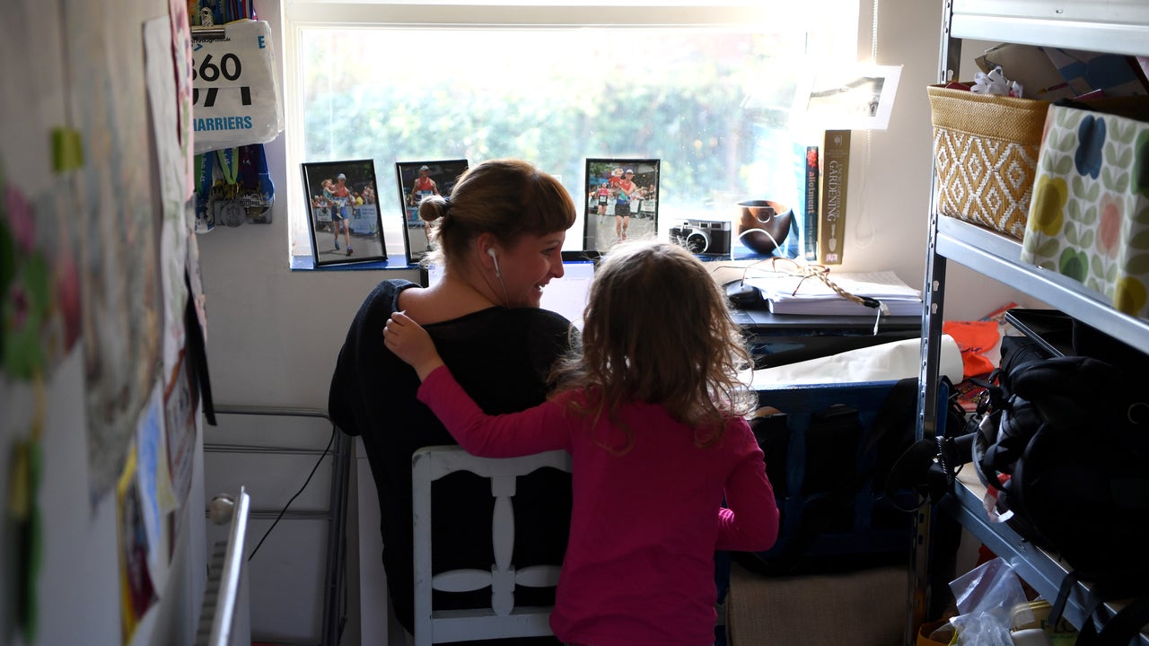 A mother and daughter photographed at home under lockdown orders. (Photo by Gareth Copley/Getty Images)