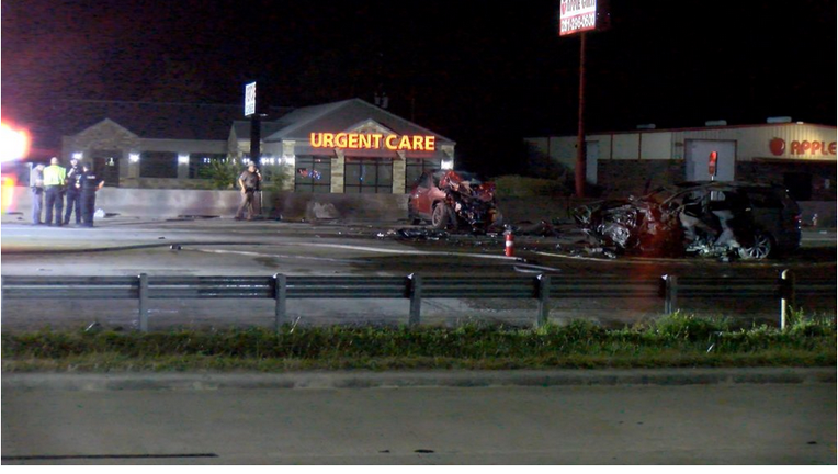 The crash happened just before 3 a.m. when a Toyota RAV4 traveling south in the northbound lanes of I-45 near FM 1488 crashed into a Dodge Durango.