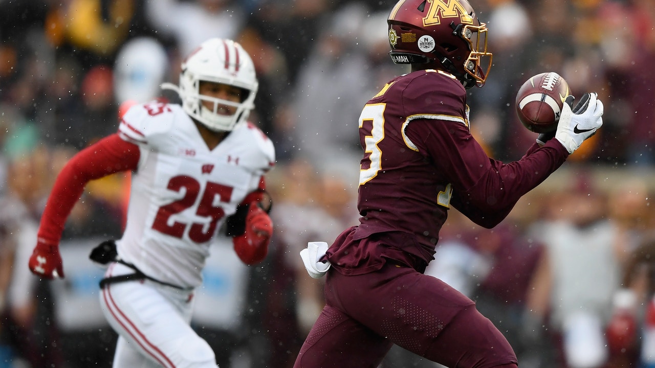 MINNEAPOLIS, MINNESOTA - NOVEMBER 30: Rashod Bateman #13 of the Minnesota Golden Gophers catches the ball against the Wisconsin Badgers during the first quarter of the game at TCF Bank Stadium on November 30, 2019 in Minneapolis, Minnesota. Bateman s ((Photo by Hannah Foslien/Getty Images))