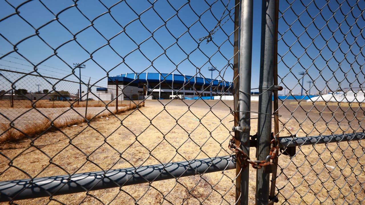QUERETARO, MEXICO - MARCH 06: General view of La Corregidora Stadium closed with a chain the day after a disturb between fans of Queretaro and Atlas took place causing dozens of injured at La Corregidora Stadium on March 06, 2022 in Queretaro, Mexico