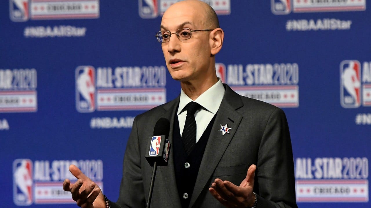 NBA Commissioner Adam Silver speaks to the media during a press conference at the United Center on February 15, 2020 in Chicago, Illinois. (Photo by Stacy Revere/Getty Images)