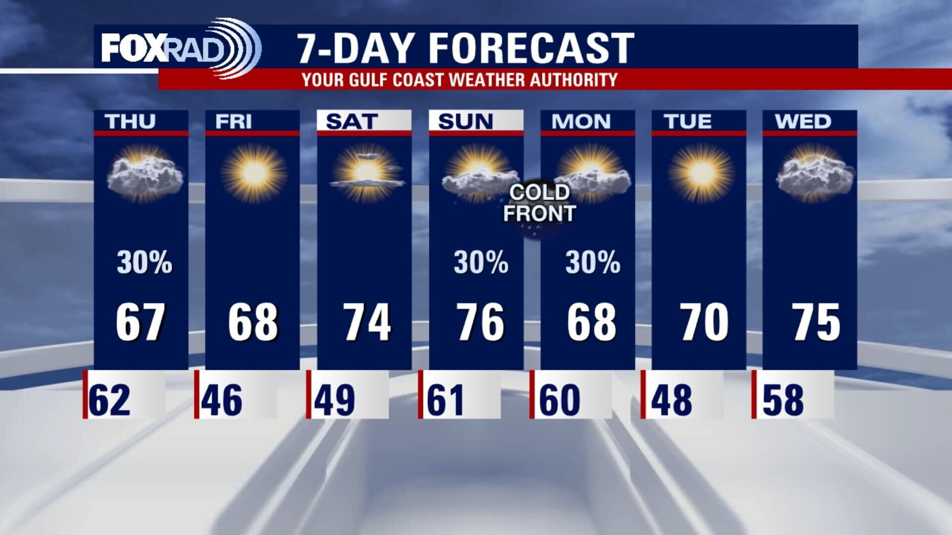 A cold front will arrive early on Thursday and there may be a few showers in the morning. By the afternoon the skies will be clearing and it will be chilly heading into the evening. Another front will arrive early on Monday with some rain.
