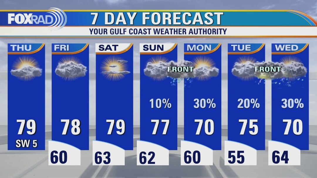 After another foggy start, Thursday afternoon is looking fantastic especially by December standards. A couple disturbances and a front increase our rain chances as we head into the weekend, but moisture is pretty limited so aside from a brief passing shower we look primarily dry through Sunday evening. We stay above 70 into next week, with another front arriving midweek.