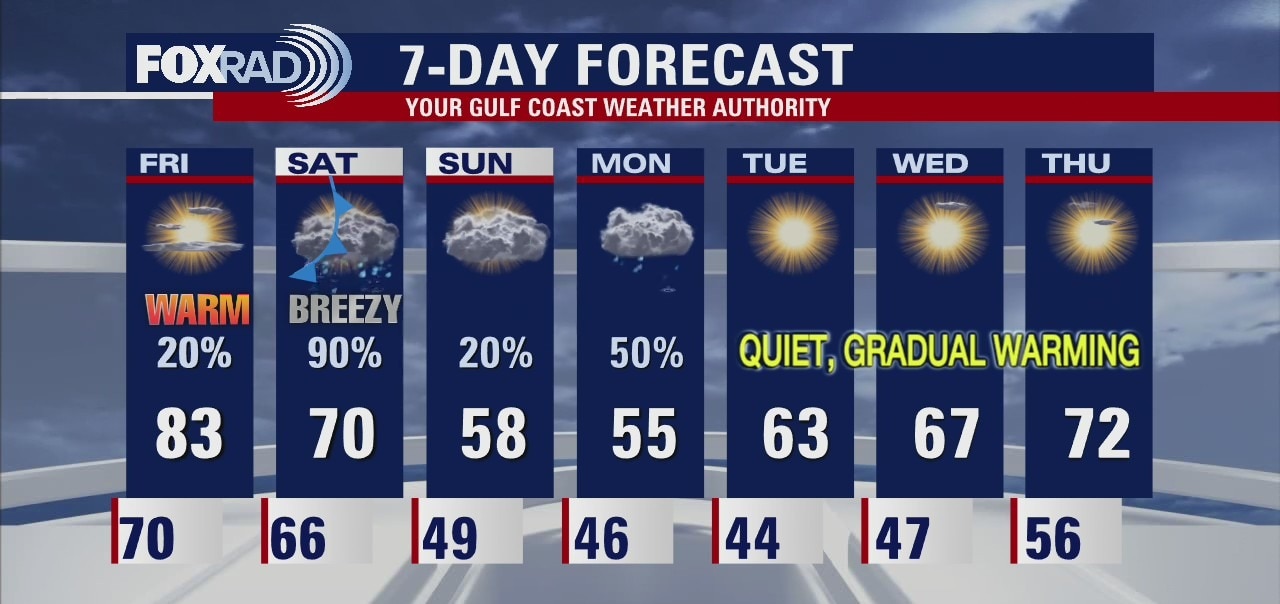 Southeast Texas will see record high temperatures one more time on Friday. A Saturday cold front will get Houston feeling more like normal for December. The front also brings rain and unsettled skies stay around through Monday. The rest of the week looks clear and mild.