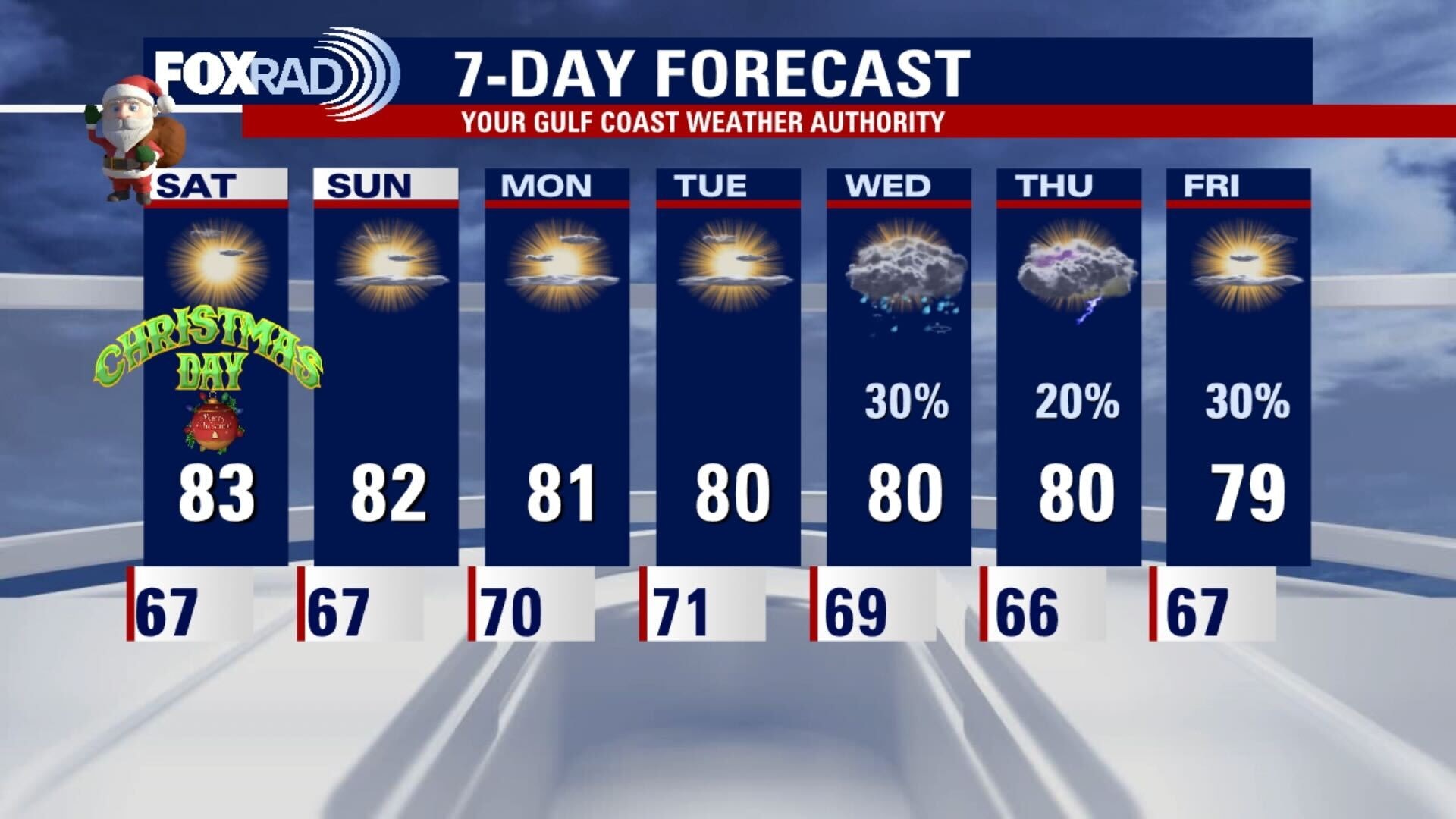 Christmas Day will have highs near record levels and it will remain on the hot side well into the coming week. There may be a few chances for some rain next week, but nothing is looking too steady, so we will have to wait and see.