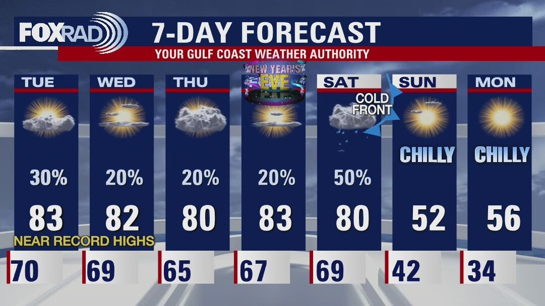 Houston will see a warm end to December with afternoon highs in the lower 80s all week. We will finish the month as the warmest December on record. Southeast Texas will see a brief cold blast as a front arrives in the middle of this upcoming weekend.