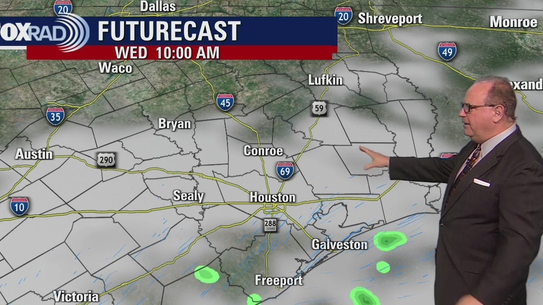 Look for some light drizzle tonight, but the skies will be clearing on Wednesday and the temps will be warming up. The next front arrives by Saturday bringing a few showers and then cooler temps for the rest of the weekend.