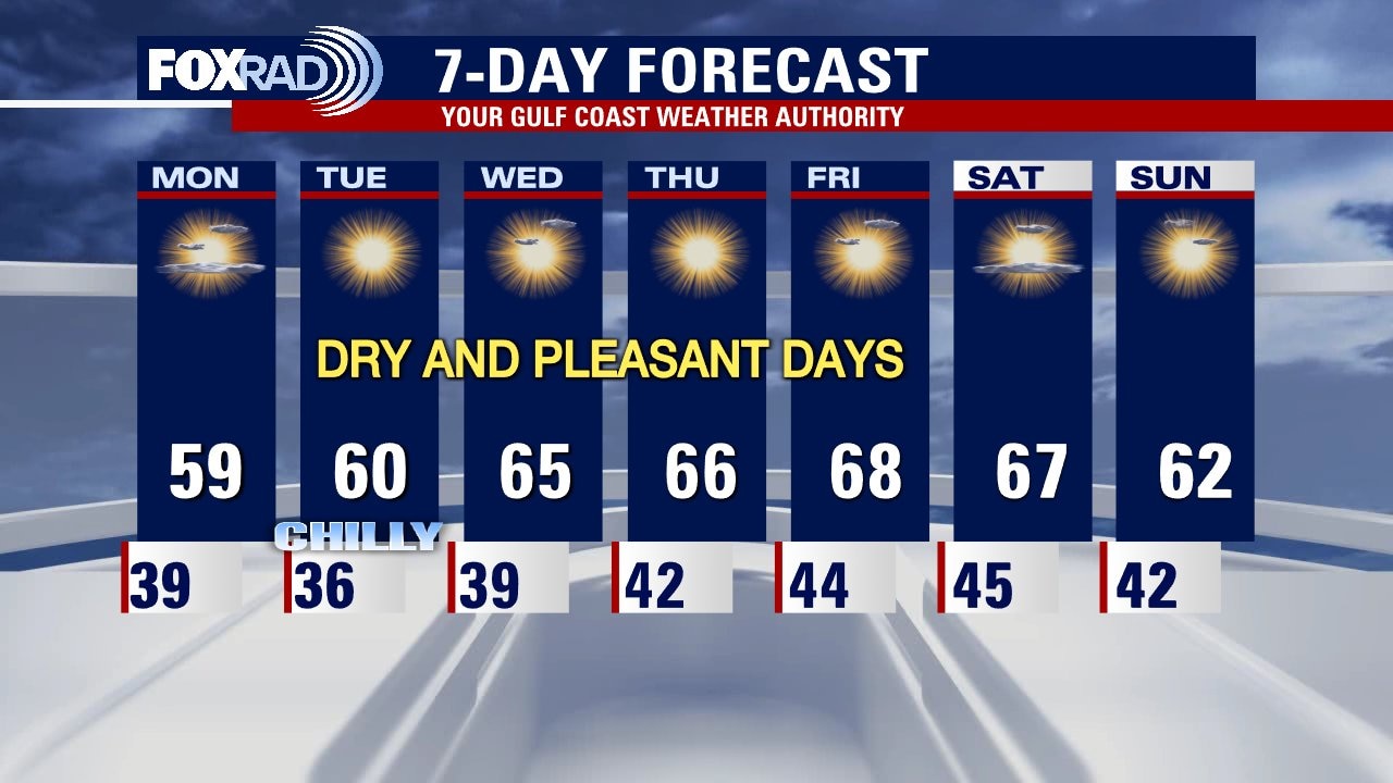 Houston is looking at a quiet and dry week. Mornings will start off chilly but lots of sunshine will make the afternoons pleasant. This would be a good week to wash the car. Enjoy some time outdoors!