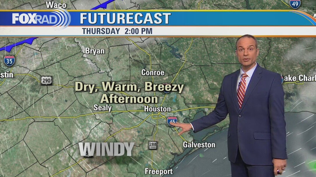 Today's weather is broken into three parts: morning rain and humidity, afternoon sun and dry air, then a plunge of cold air this evening. It will also be windy with warm winds turning to cold winds late today. Lows could drop into the mid 30s overnight with brisk weather through Sunday morning. Next week looks unsettled with showers and storms possible each day.