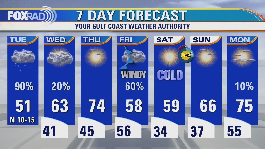 Oh boy...Today, we're looking for another cloudy, cold and rainy day with temperatures stuck in the upper 40s and low 50s. Conditions will improve slightly for Wednesday and much more Thursday, so enjoy that because a strong cold front moves in on Friday. Expect windy, rainy and cold conditions Friday and we will closely watch the temps for Saturday morning because a light freeze, although isn't likely, is still possible.
