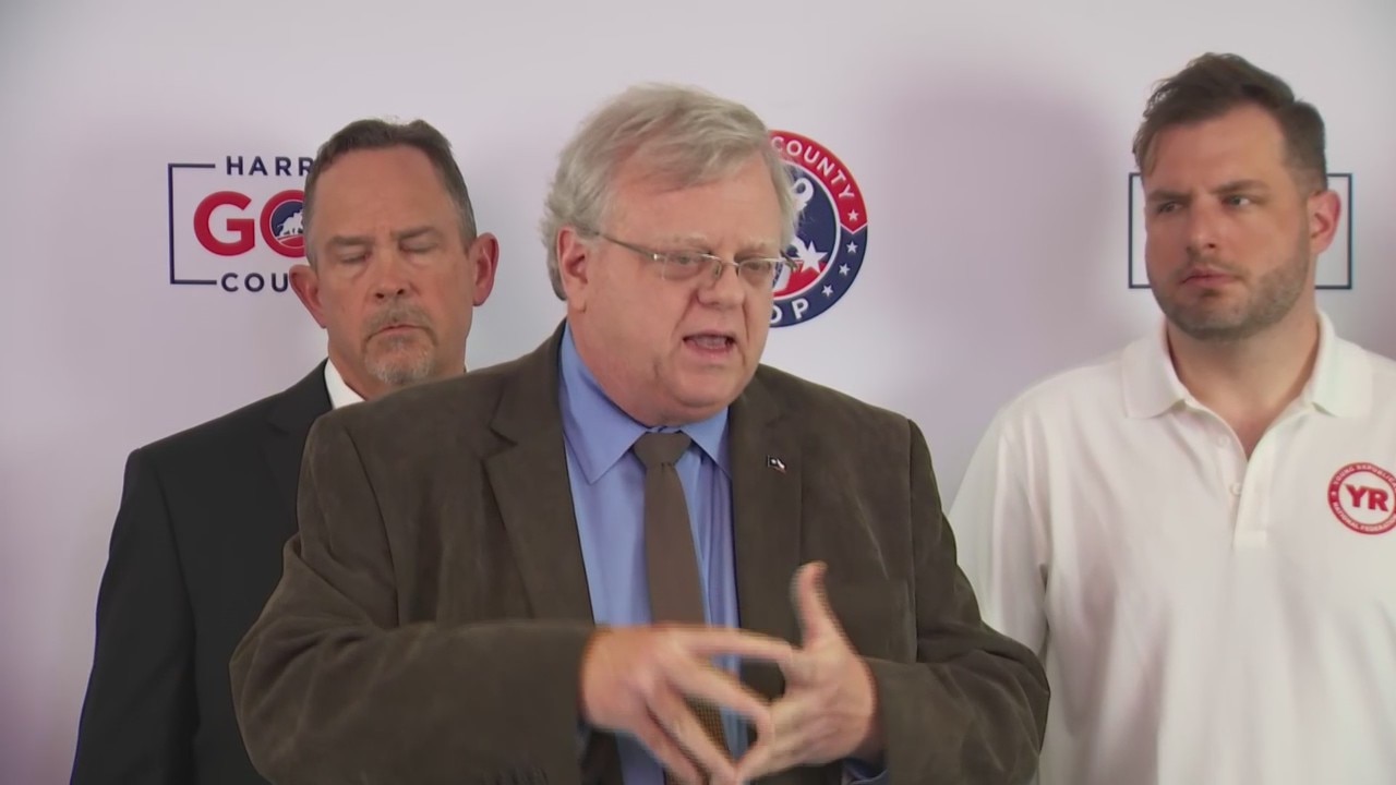 State Sen. Paul Bettencourt speaks at Harris County GOP press conference on Elections Administrator's Resignation