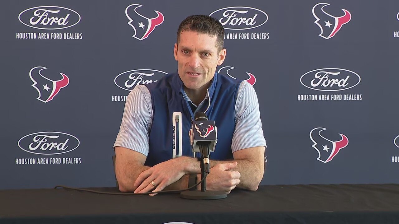 Texans General Manager Nicholas Caserio delivers remarks on Deshaun Watson joining the Cleveland Browns