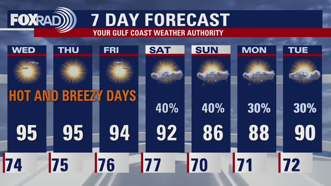 The heat wave continues for the rest of the week. Look for highs in the low to mid 90s each day as a historically warm May continues. Expect a change in the pattern this weekend with a cold front bringing rain chances back to the forecast with some slightly cooler afternoon highs.