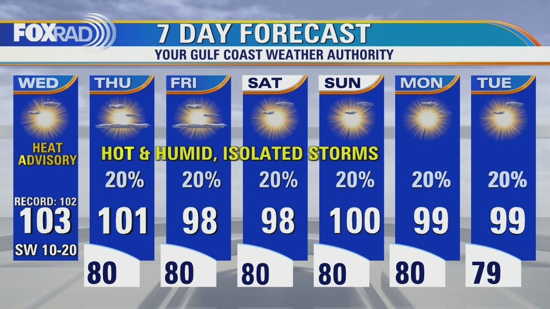 Mostly sunny, very hot Wednesday with highs in the low 100s
