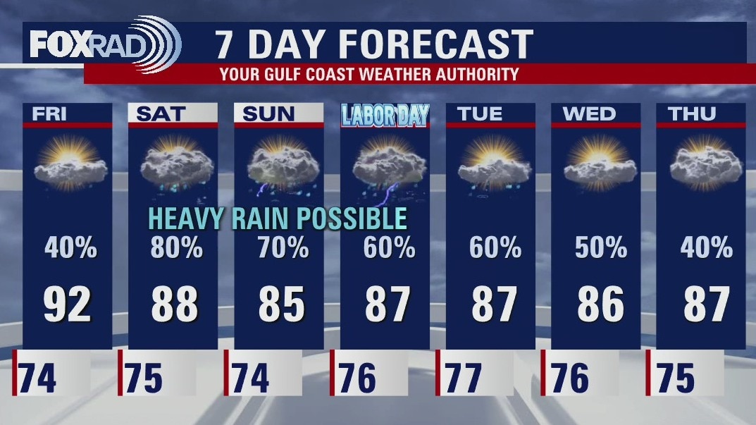 Friday should see warm temperatures and isolated downpours around Houston, very similar to what things looked like on Thursday. The holiday weekend brings the changes with increased chances for rain. Some of those downpours could be heavy and slow moving causing some street flooding. If you have outdoor plans for the holiday on Monday, make sure you have a rain option. There will definitely be scattered showers around Southeast Texas.
