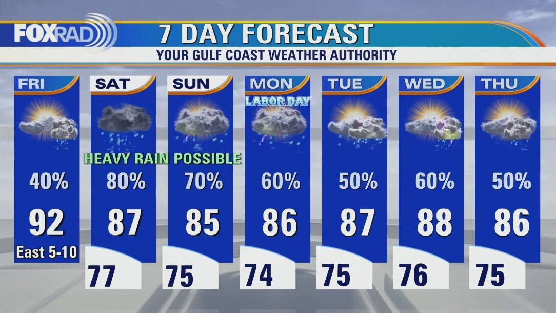 Today will be pretty similar to yesterday, with isolated afternoon storms. Conditions look to deteriorate over the long holiday weekend, with a higher probability of downpours on Saturday and Sunday. Definitely be sure to have a plan B for local outdoor plans, and factor in extra time for possible travel delays if headed out of town. Our cooler, rainy pattern doesn't look to let up anytime soon. And, though the Tropics are more active as we approach the peak of the season no system is of threat to the Continental U.S. at this time.