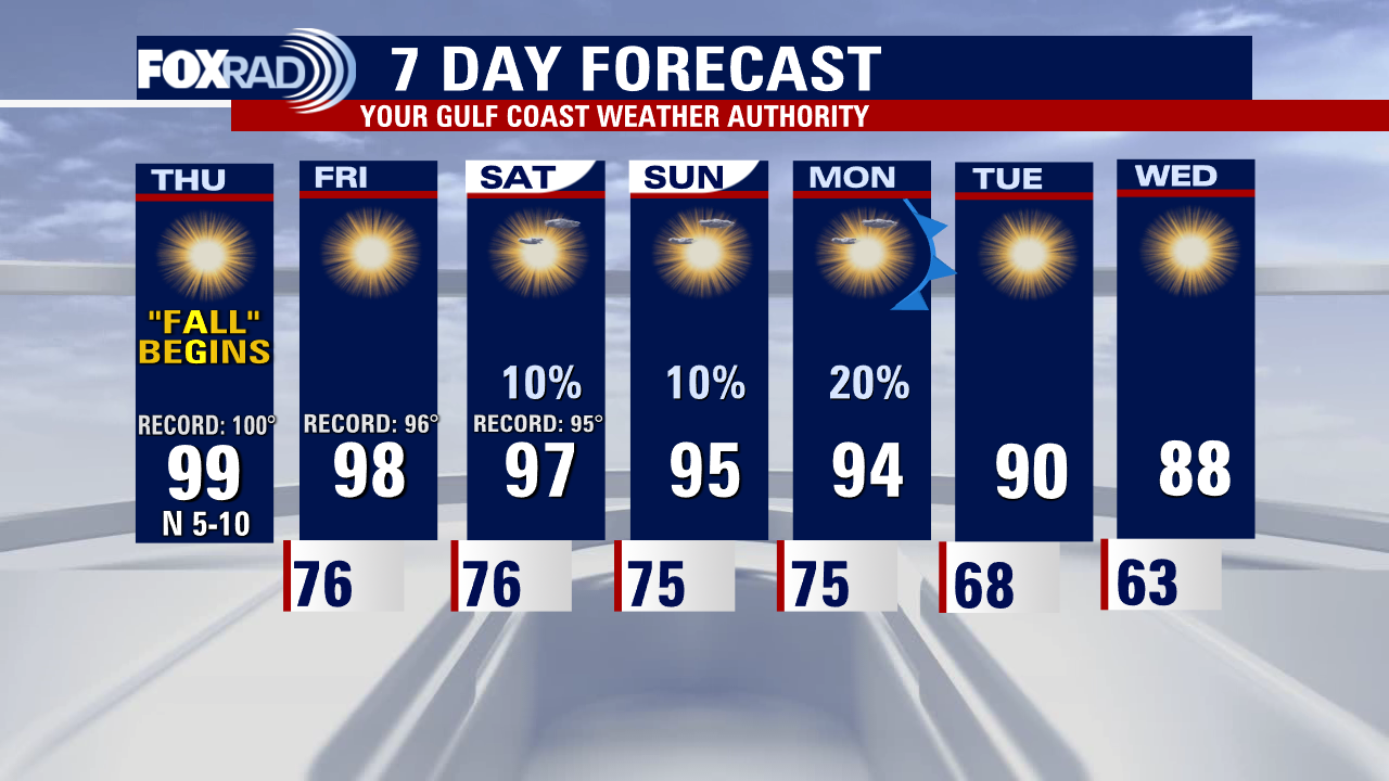 "Fall" begins on a toasty note, with potentially record-breaking heat lingering into the weekend. A cool front will pull in more seasonable, refreshing temperatures and drier air for next week. It also may help act as a boundary, to steer away a developing tropical system. For the latest on that, and all other happenings in the Atlantic visit the tropics tab on our website and our in-depth discussions on YouTube.