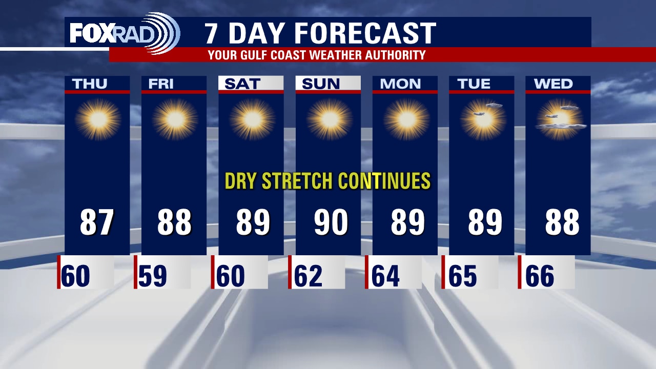 We get to enjoy more stellar weather across SE Texas! A ridge of high pressure remains dominant across the region and that means very dry air in place and quiet weather. Look for pleasant nights in the 50s and 60s with near average temperatures in the upper 80s to near 90 during the afternoon. We are still tracking Hurricane Ian which made landfall as a Category 4 150 mph tropical cyclone this afternoon near Cayo Costa, Florida. Ian will weaken as it crosses the Florida peninsula tonight and Friday. But it will still pose a huge flood risk and produce some damaging wind.